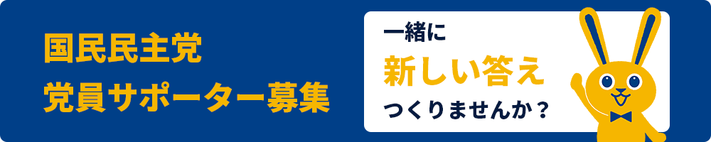 国民民主党では、私たちといっしょに「新しい答え」をつくっていただける党員やサポーターを募集しています。 あなたのお力をぜひ、お貸しください。